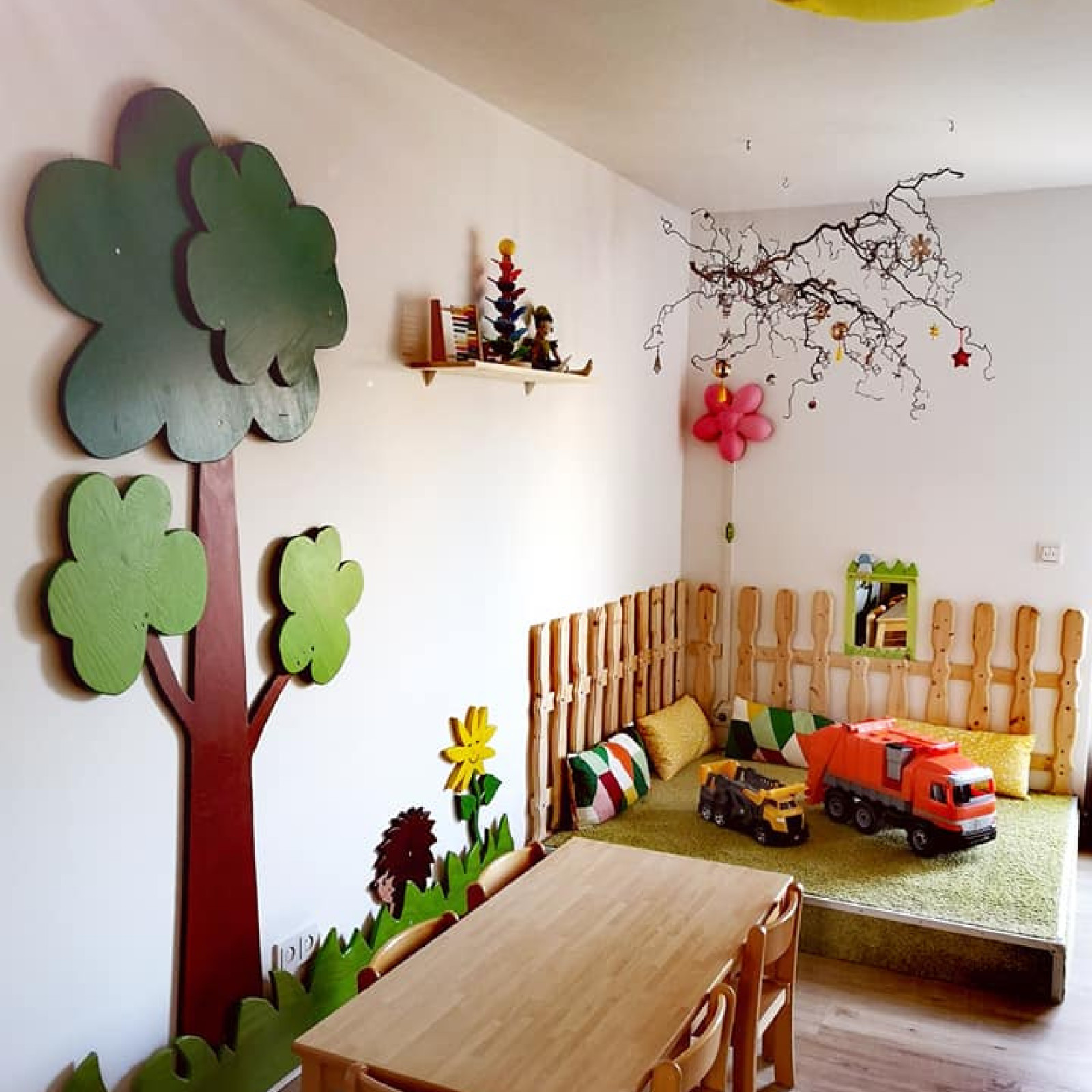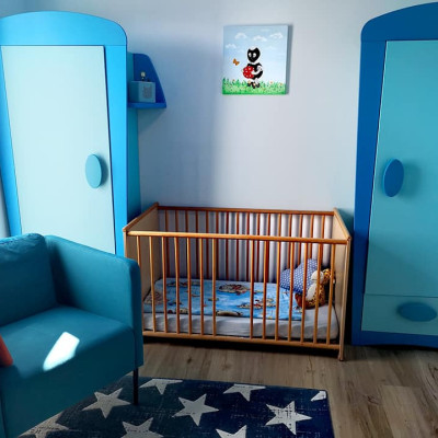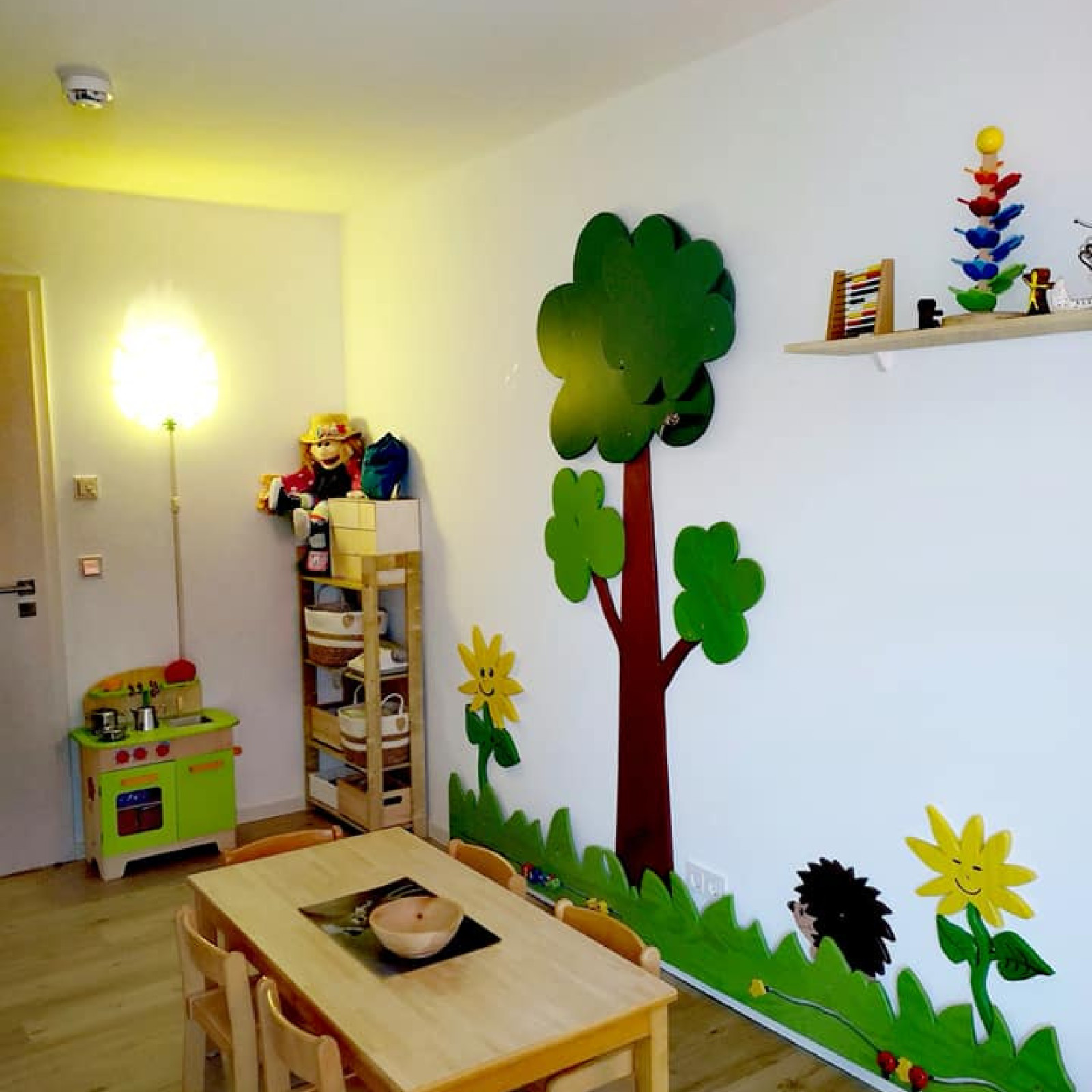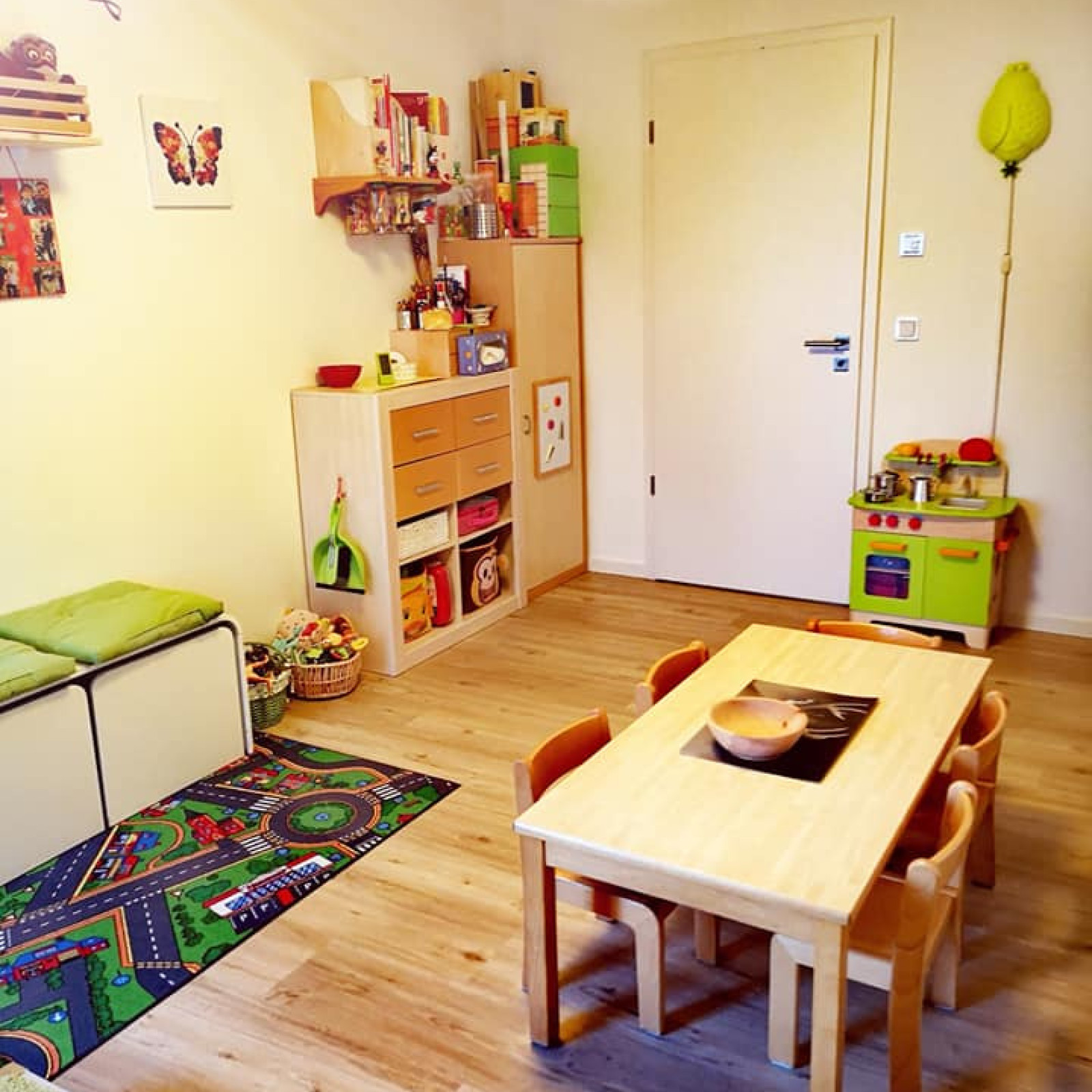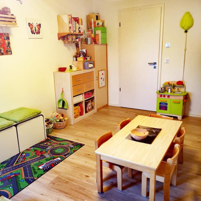 Die Betreuung findet in meiner privaten Wohnung statt, mit separaten Räumen für die Kinder. So bieten uns ein Spielzimmer, ein Schlafzimmer und ein kleines Bad genügend Platz, um sich auf verschiedene Arten zu entfalten. Den Flur sowie die Küche nutzen wir mit meiner Familie gemeinsam.